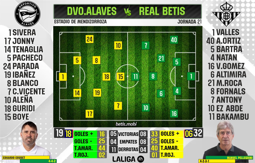 - Intensidad: el Alavés, jugando en casa y en la situación en la que está, va a salir muy intenso desde el minuto uno. Igualar este aspecto es fundamental si el Betis quiere tener algo de dominio.