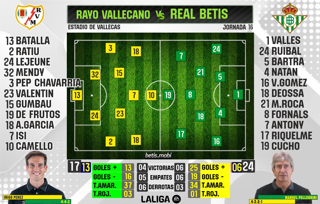 Rayo Vallecano y Real Betis se miden en la Jornada 16 con el objetivo de cerrar el año con buenas sensaciones. Dos equipos europeos, propuestas de juego atractivas y la necesidad de sumar de tres en tres se dan cita en un encuentro que promete espectáculo.