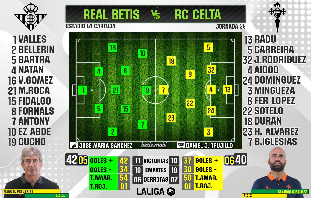Con el tramo decisivo del campeonato cada vez más cerca, el margen de error se reduce y cada punto pesa como oro en la pelea por Europa. El Betis quiere reencontrarse con su mejor versión para consolidar su posición, mientras que el Celta llega con la ambición de dar un golpe sobre la mesa y meterse de lleno en esa zona privilegiada.