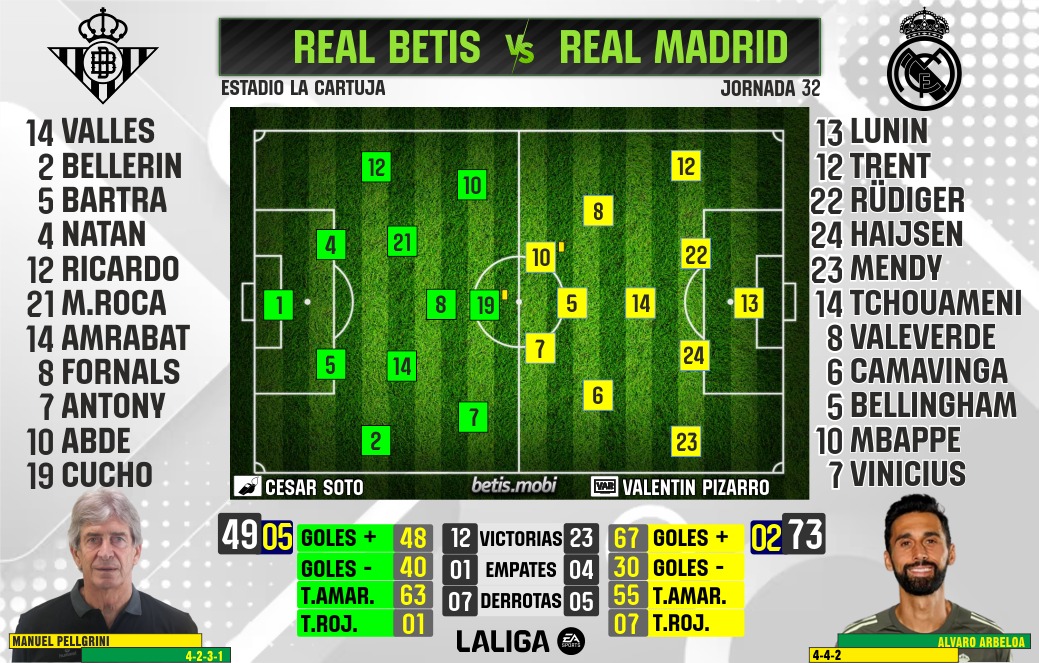 - Contragolpes: pueden ser las armas con las que, tanto Betis como Madrid, hagan mucho daño. Ambos conjuntos cuenta con jugadores muy potentes al espacio y que son letales con metros por delante.